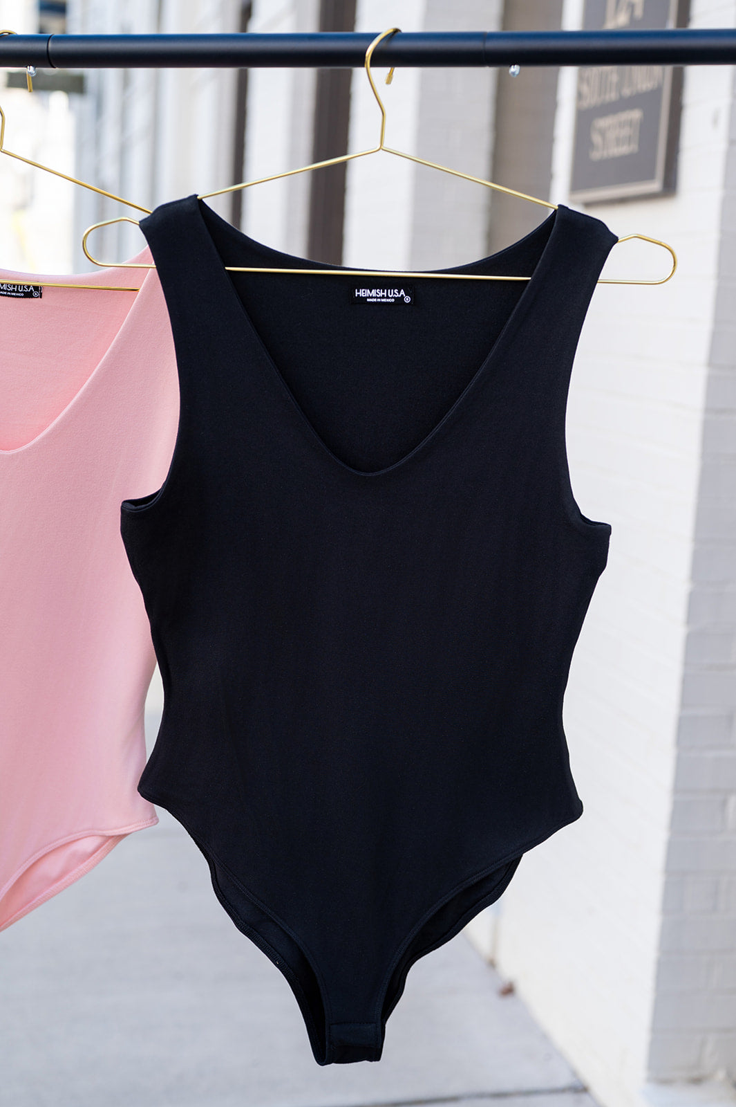 The Black Essential V Neck Sleeveless Bodysuit is the ultimate everyday staple with sleek versatility! Designed in a smooth, stretchy fabric with a flattering V neckline, this piece gives you that polished tucked in look without the extra bulk.