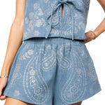 Denim shorts with sequin paisley print