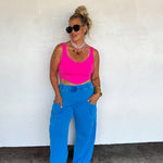 These wide leg pants feature a slight high-rise fit with an adjustable drawstring waistband for all-day comfort. Designed with bold front patch pockets and exposed seam detailing, they offer a casual yet elevated look. The washed terry cotton fabric adds a vintage vibe, while the relaxed wide leg cut keeps them effortlessly cool and easy to style. PANTS Only