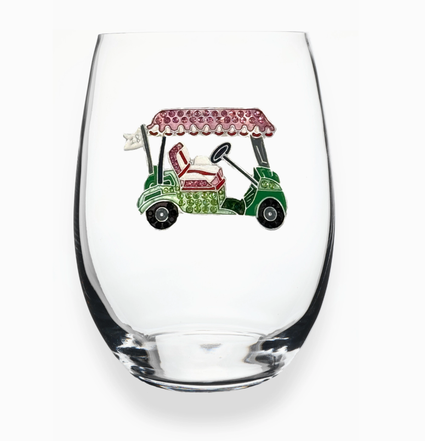 Celebrate your love for the game with the Golf Cart Stemless Wine Glass, a boutique-quality addition to any wine lover’s collection. Its stemless design offers stability and a modern aesthetic, while the charming golf cart motif adds personality and festive flair.