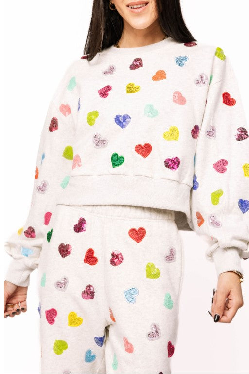 Light Grey Multi Rhinestone Heart Sweatshirt – Queen of Sparkles
