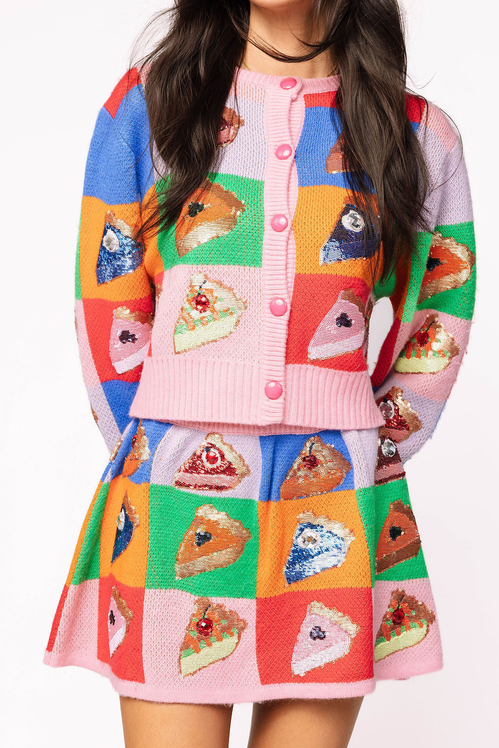 Add a splash of joy to your wardrobe with the Rainbow Colorblock Piece of Pie Skirt. This playful skirt features vibrant color blocks arranged like sweet slices of pie, perfect for twirling through your day with a burst of sparkle and fun. It's flattering design and cheerful hues make it an irresistible choice for anyone ready to brighten up their style. Preorder now and be the queen of color and charm!