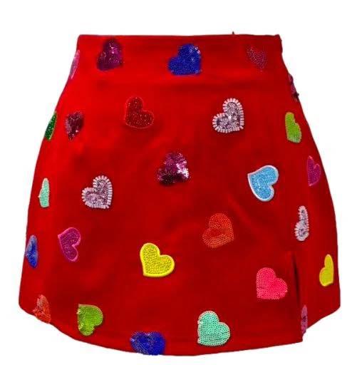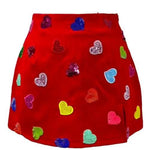 Make a bold, sparkling statement in the Red Multi Rhinestone Heart Skirt. Designed to turn heads, this standout skirt features eye-catching multi-color rhinestone heart embellishments that add the perfect mix of glam and playful charm.