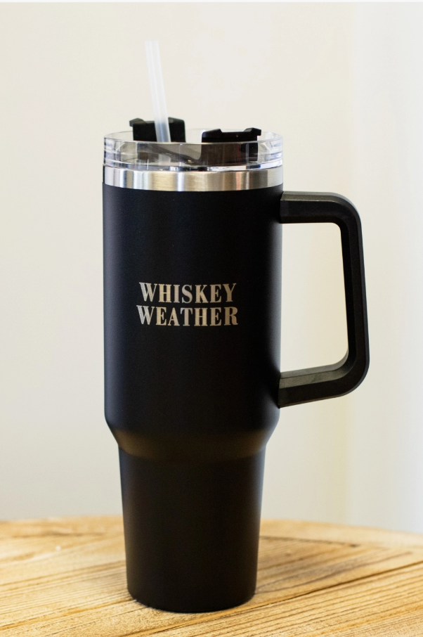 Upgrade your beverage game with the 40oz Black Whiskey Weather Tumbler. Designed with style and functionality in mind, this tumbler keeps drinks hot or cold for hours, making it perfect for morning coffee, iced beverages, or whiskey cocktails on the go.