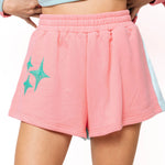 Finished with embellished sparkle star detailing and designed with a comfortable elastic waistband, these shorts are made for standing out. Pair them with the matching sweatshirt for the full set moment or style them with a simple tank to let the details shine!
