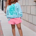 Playful, eye-catching, and completely statement-making, this sweatshirt was made for the girl who loves to stand out. Pair it with the matching shorts for the full set moment or style it with denim for a fun pop of sparkle!
