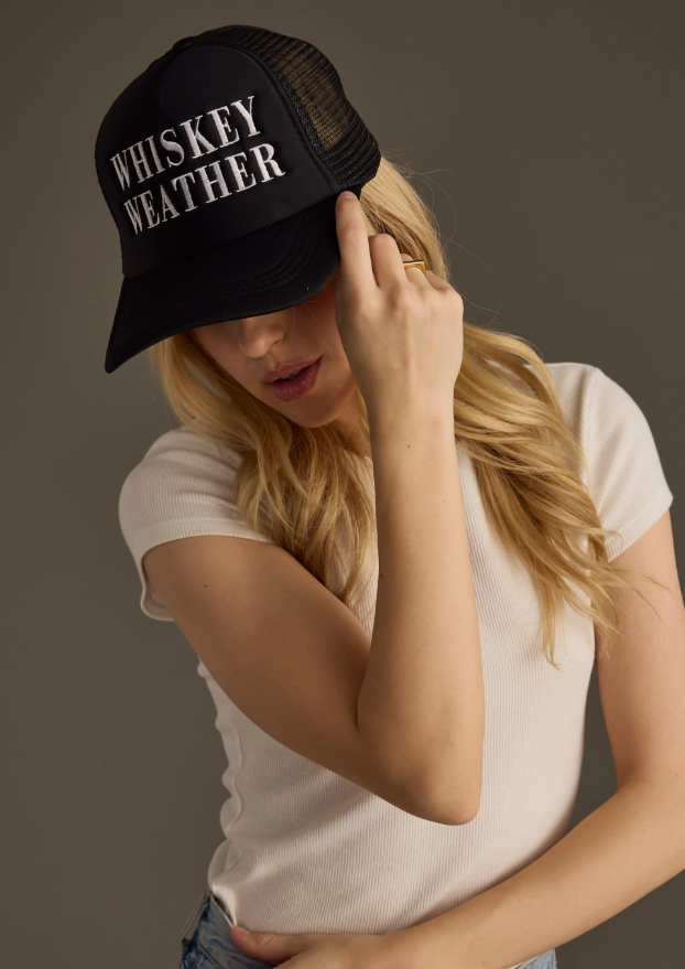 Elevate your casual wardrobe with the Black Whiskey Weather Trucker Hat. This boutique-quality hat features a classic trucker design with a structured front panel, breathable mesh back, and adjustable snap closure for comfort and a perfect fit. Its sleek black color makes it a versatile accessory to pair with any outfit, from casual weekend wear to outdoor adventures.