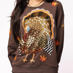Brown Turkey & Leaves Sweatshirt - Brown [Queen of Sparkles]