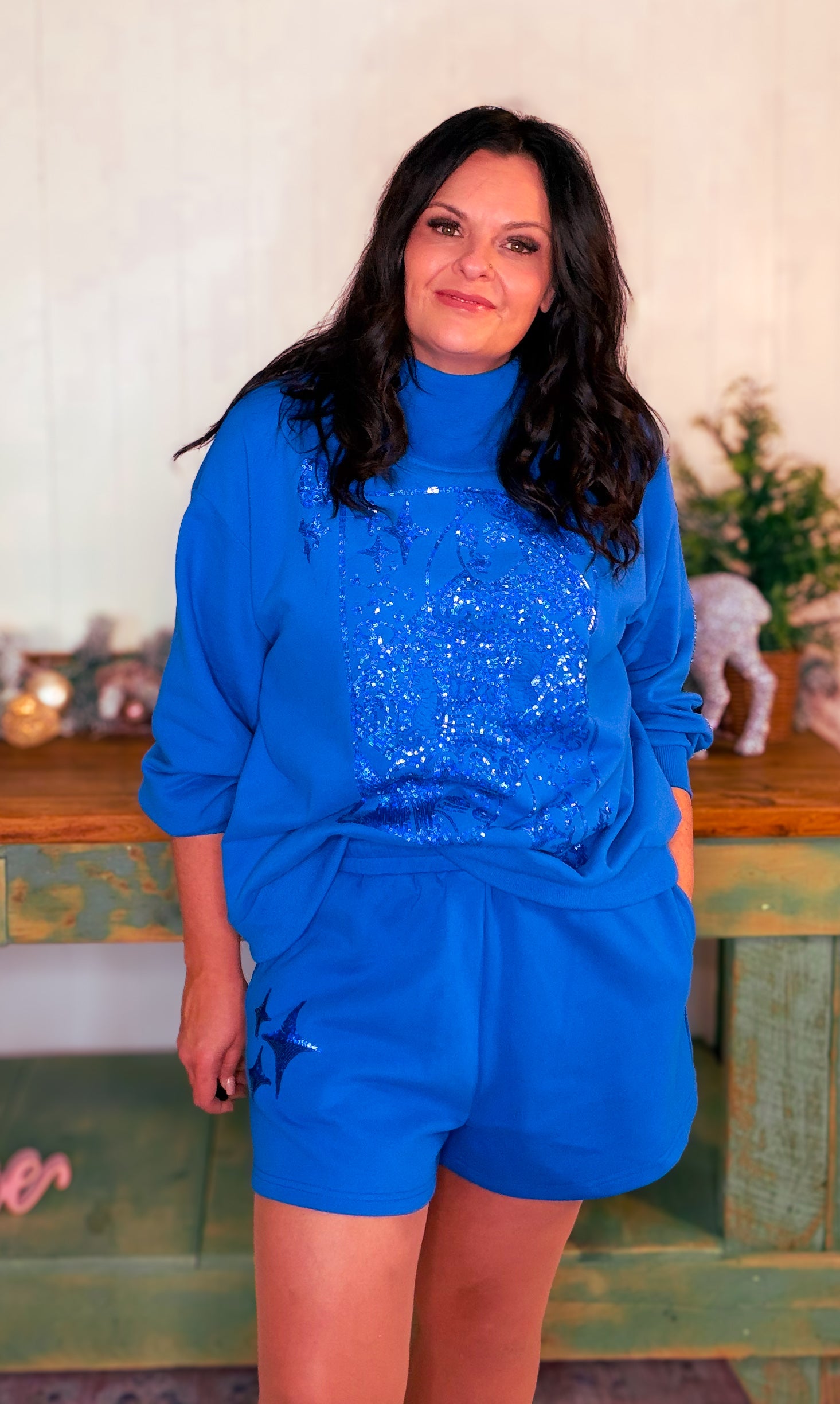 The Royal QOS Sparkle Logo Short brings bold color and signature Queen of Sparkles shine to any outfit. These women’s sparkly boutique shorts feature an elastic waistband, relaxed fit, and sequin logo detail—perfect for game day outfits, matching sets, and trendy casual wear.