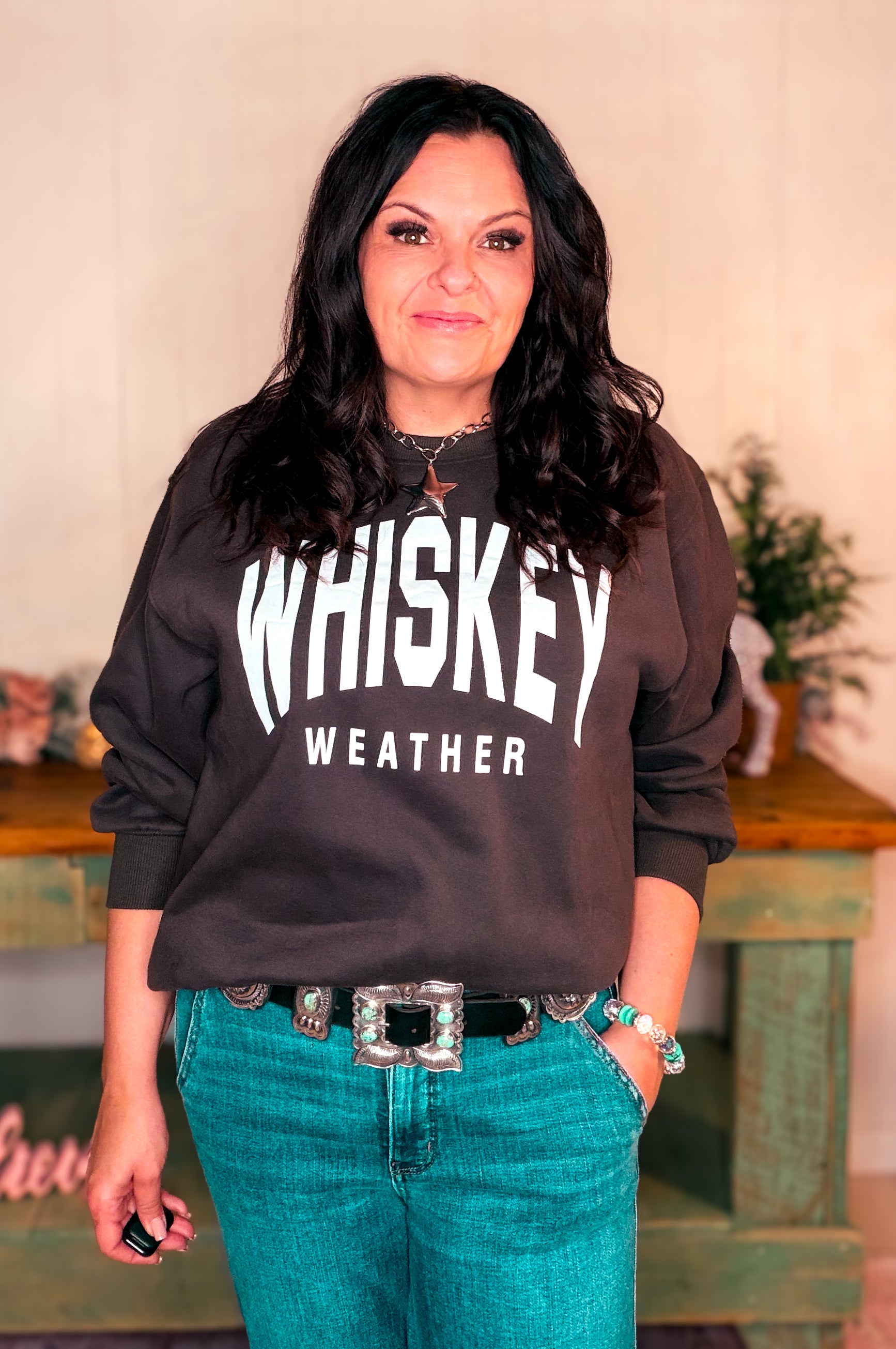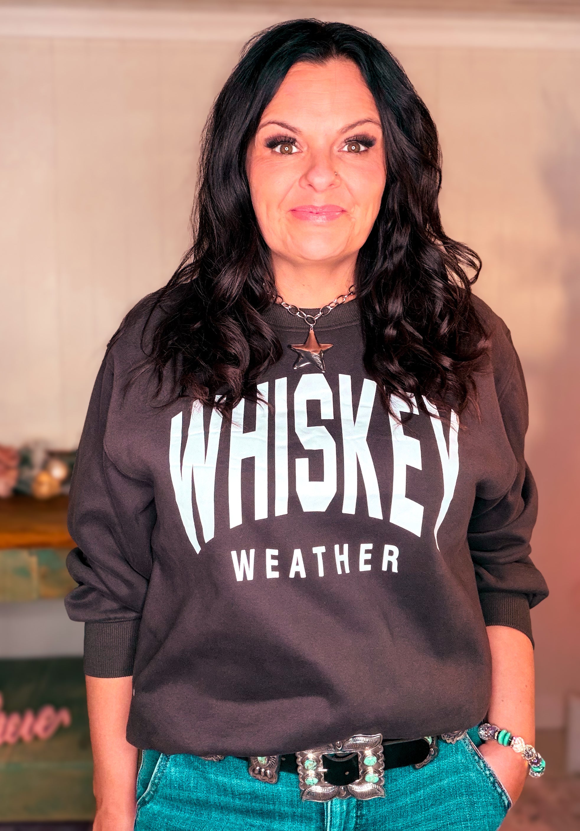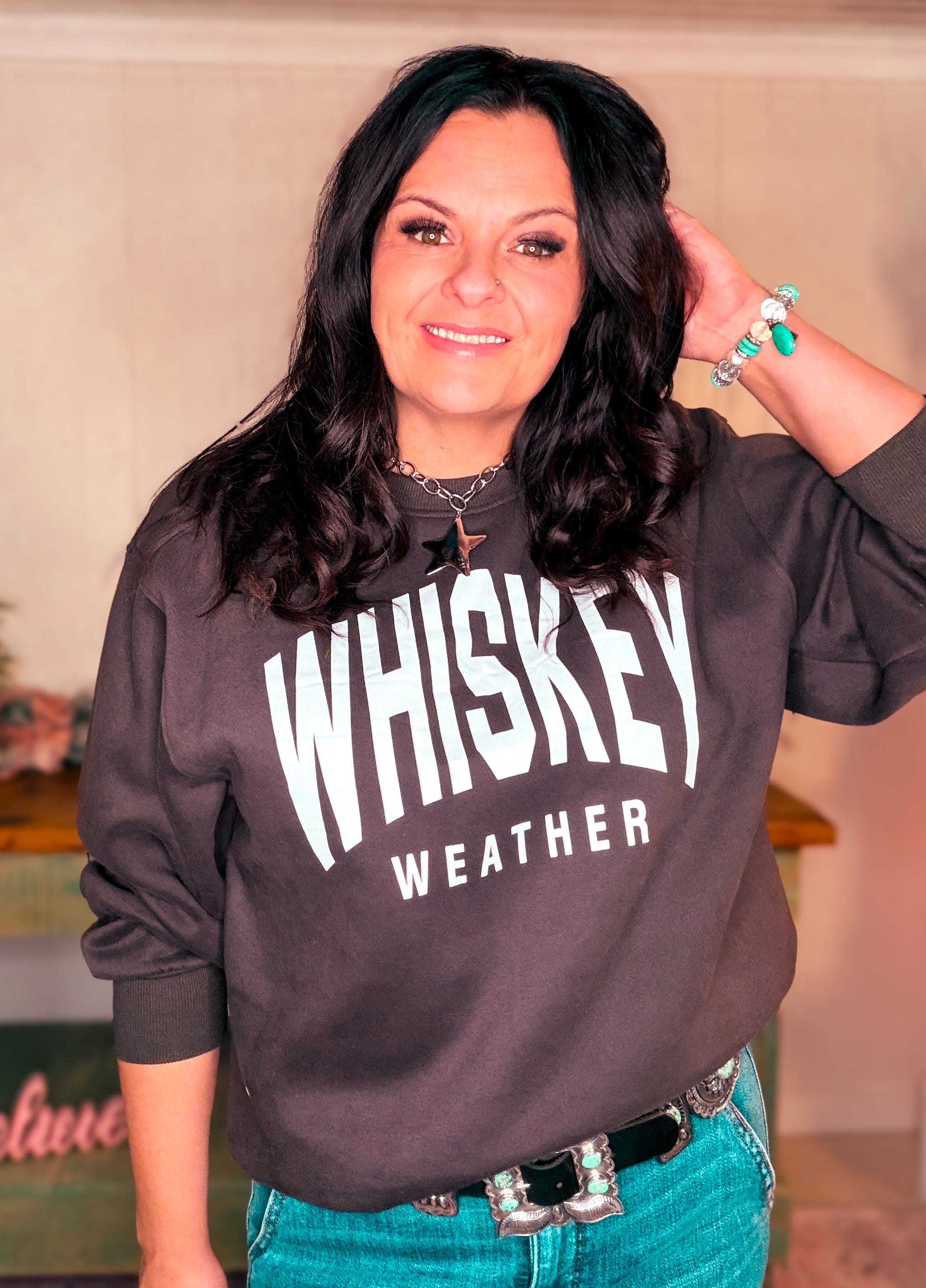 Elevate your casual wardrobe with the Charcoal Whiskey Weather Sweatshirt, a boutique-quality essential that combines comfort, style, and versatility. Made from soft, durable fabric, this sweatshirt keeps you cozy while offering a relaxed fit that pairs perfectly with jeans, leggings, or joggers.