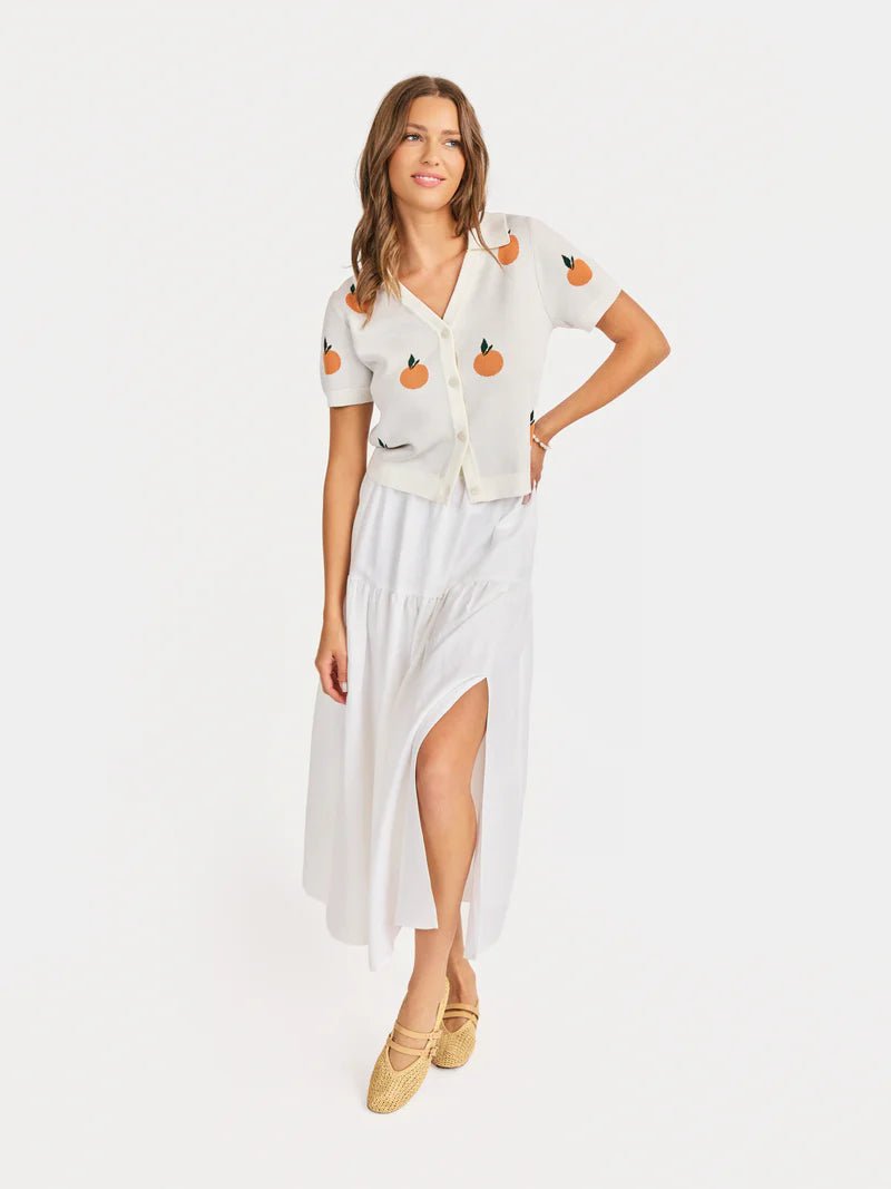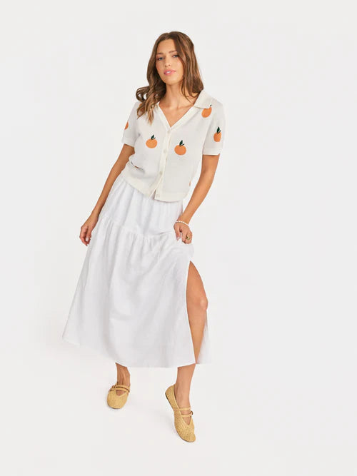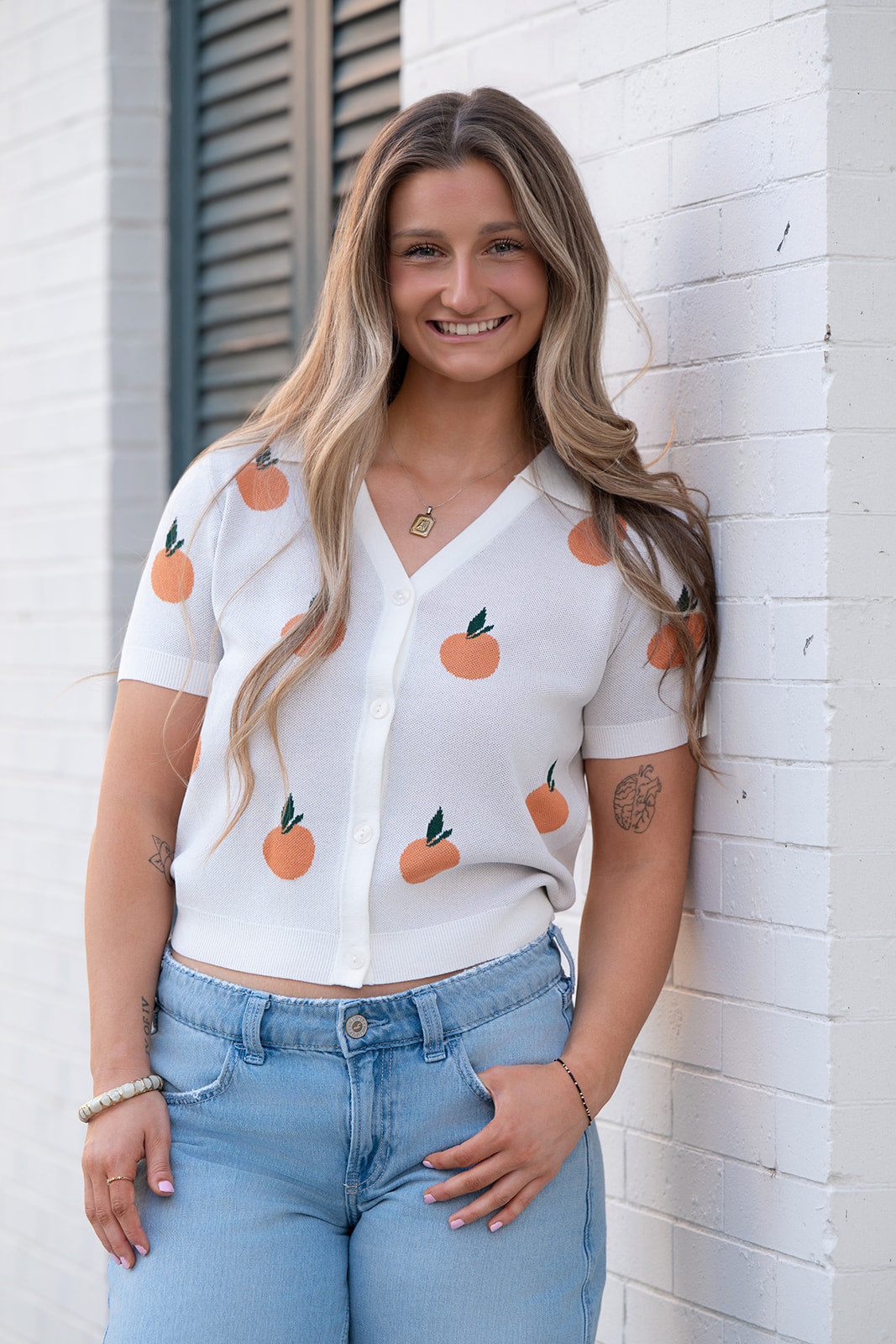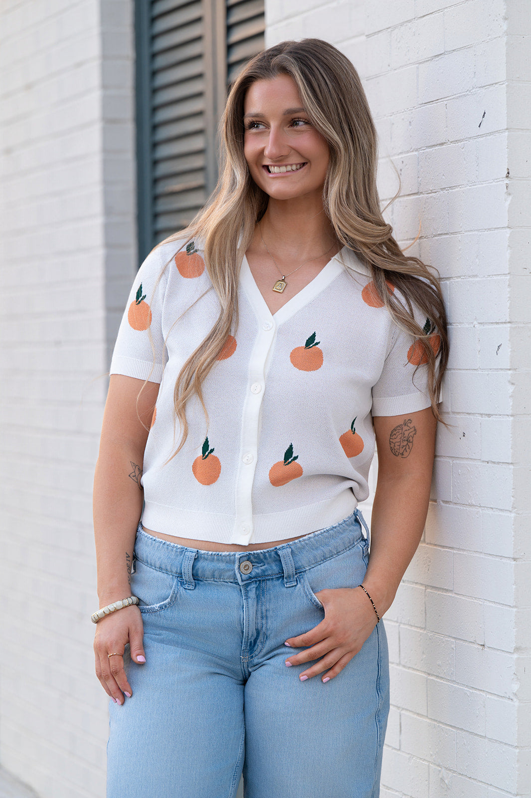 • 🍊 The embroidered oranges make it such a fun statement piece