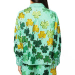 Green & White Striped Rhinestone Shamrock Button Up Long Sleeve Top