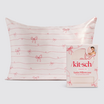 Sleep in style this holiday season with the Kitsch Holiday Satin Pillowcase in Striped Bows. Made from luxurious, friction-reducing satin, this pillowcase helps keep hair smooth, frizz-free, and shiny while protecting your skin from creases and irritation overnight. The playful striped bow print brings festive cheer to your bedroom or guest room, making it a perfect holiday upgrade or gift.