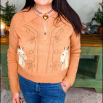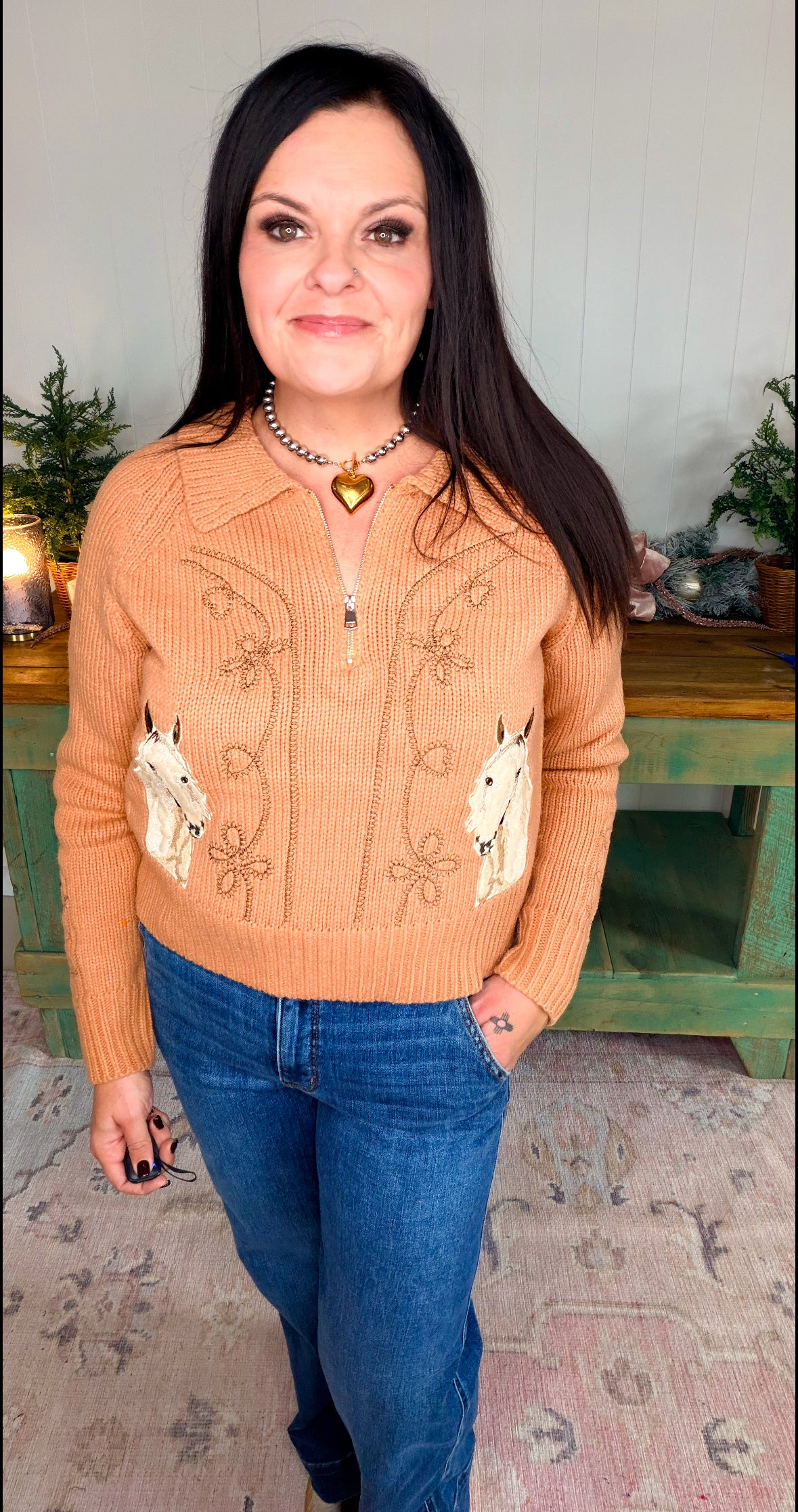Horse Embroidered Zip Up Mock Neck Sweater – Pink Creek