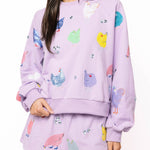 Add the perfect mix of playful charm and signature sparkle to your wardrobe with the Queen of Sparkles Lavender Multi Chicken Sweatshirt! Featuring colorful sequin chicken designs scattered across a soft lavender base with rhinestone egg accents, this statement piece is equal parts fun and fabulous!