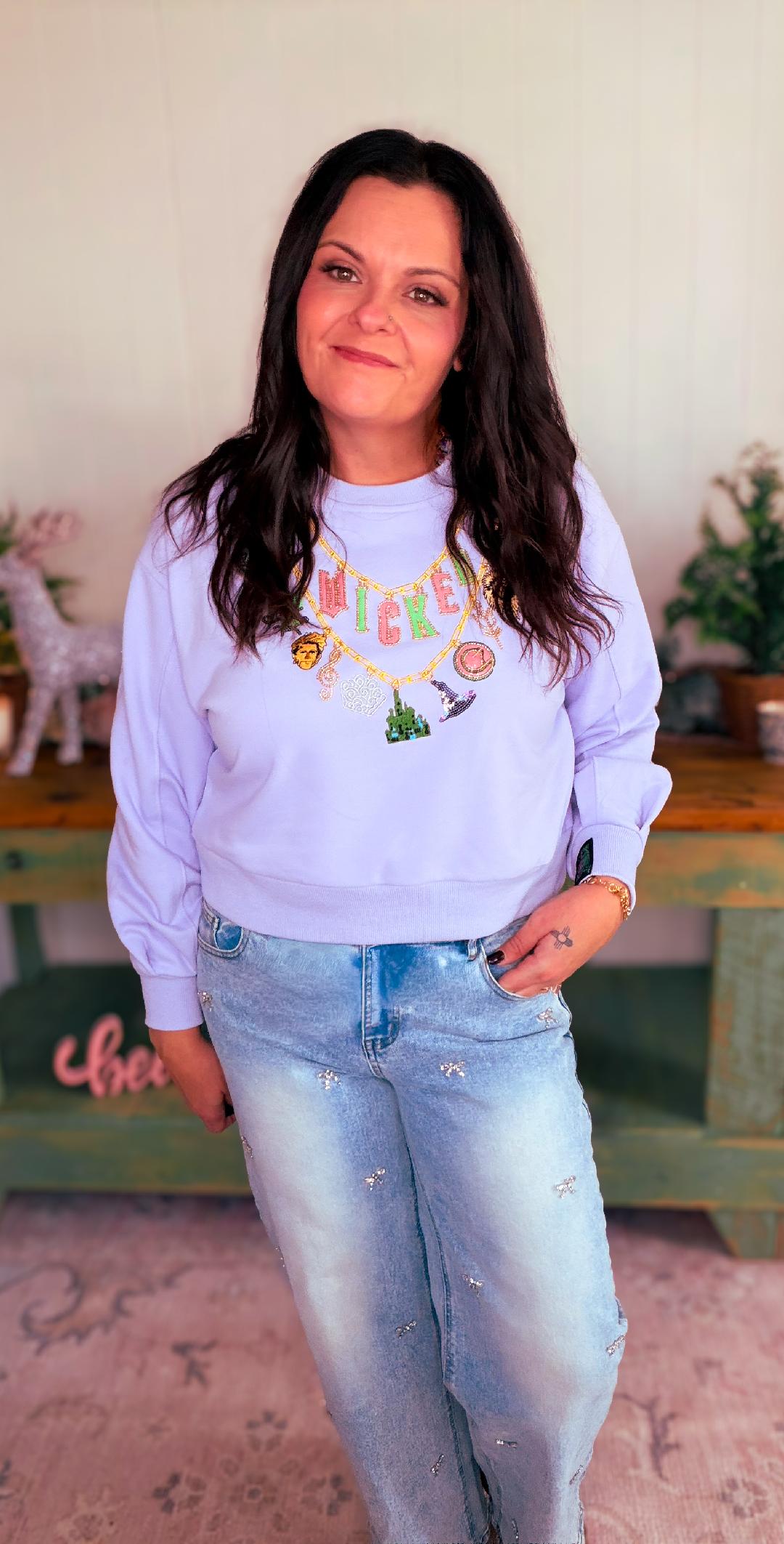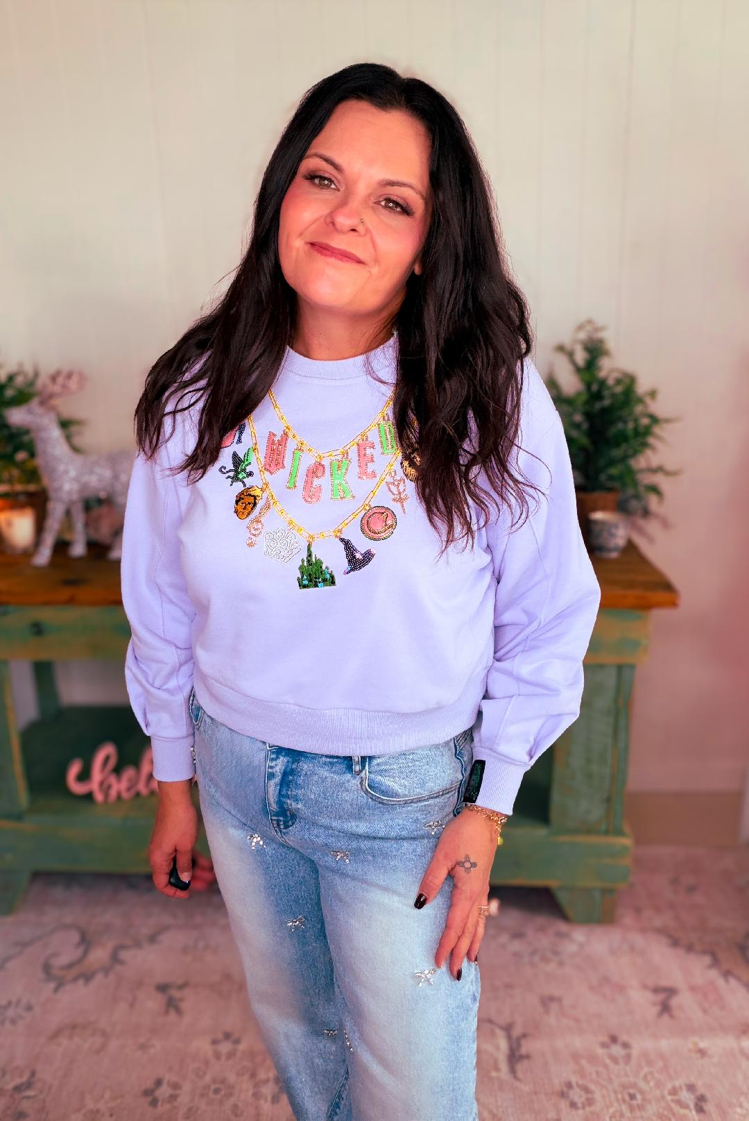 Licensed Lavender Wicked Charm Necklace Sweatshirt – Lavender | Queen of Sparkles