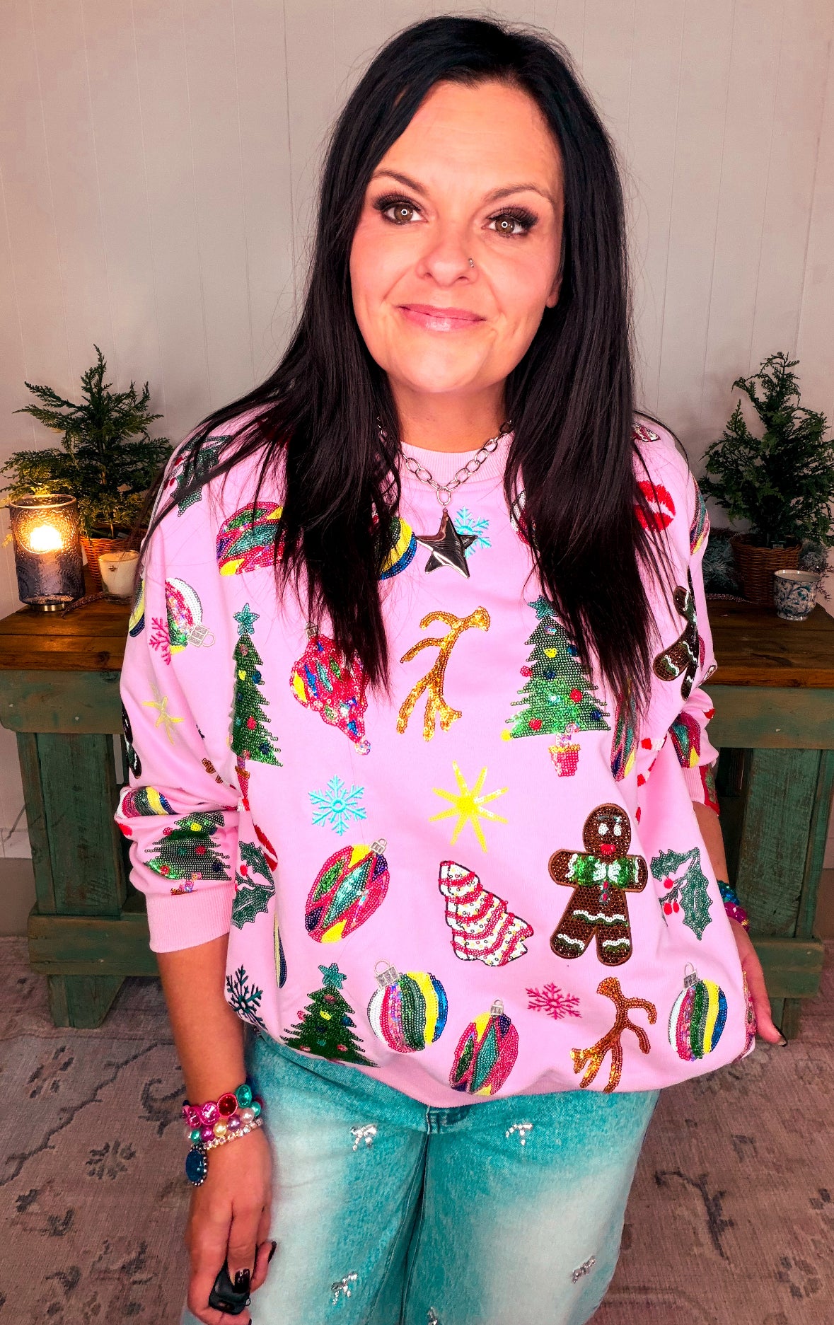 Light Pink Christmas Icons Sweatshirt - Light Pink [Queen of Sparkles] – Pink Creek