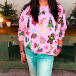 Light Pink Christmas Icons Sweatshirt - Light Pink [Queen of Sparkles]