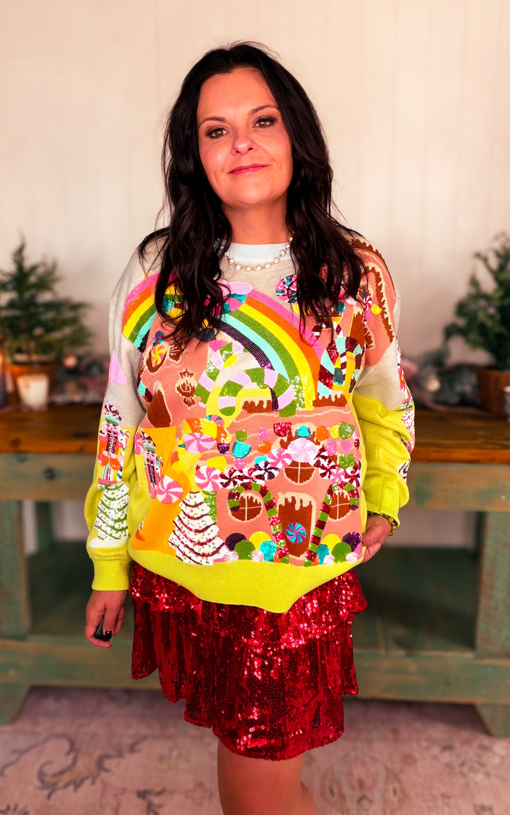 Get ready to sweeten up your holiday style with this Multi Christmas Candyland Knit Sweater! Bursting with colorful charm, it’s perfect for spreading festive cheer while staying cozy. Playfully designed with delightful candy-inspired patterns, this sweater turns any gathering into a fun celebration. A joyful pick for anyone who loves a whimsical twist on classic Christmas wear!