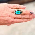 Show off timeless southwestern style with this One-Stone Sonoran Gold Ring, featuring a vibrant Sonoran Gold stone set in a bold, artisan-crafted design. Hand-signed by B. Yellowhorse, this ring combines expert craftsmanship with a striking, statement-making look. Perfect for everyday wear or special occasions.