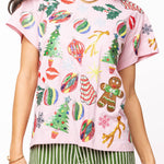 The Queen of Sparkles Light Pink Christmas Icon Tee is the cutest way to add festive cheer to your wardrobe. Covered in sparkling Christmas icons – think trees, candy canes, ornaments & more – this sequin-detailed tee is perfect for dressing up or keeping it casual.