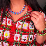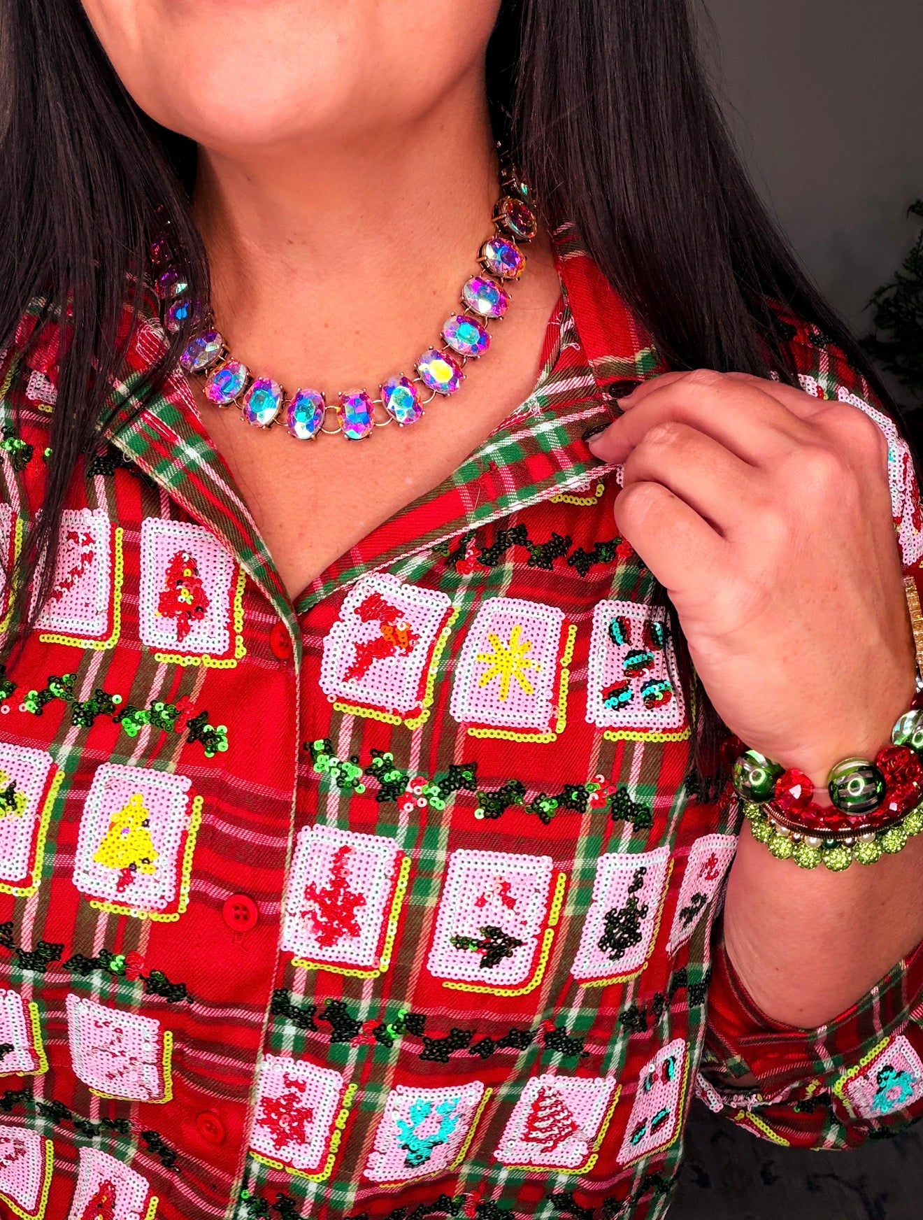 Add a fun twist to your wardrobe with the Red Plaid Mahjong Tile Button Up Top. Featuring a playful mix of classic red plaid and unique mahjong tile accents, this top brings charm and personality to your everyday look. Perfect for layering or wearing solo, its button-up style lets you dress it up or down with ease. Embrace your sparkling spirit with a piece that’s as vibrant as you are!