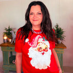 Bring the holiday cheer with our Retro Santa Graphic Tee with Sparkles—a festive favorite that adds just the right amount of shine! This soft, comfortable tee features a vintage-inspired Santa graphic accented with sparkly details for that extra holiday magic.