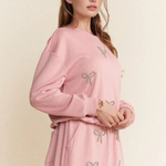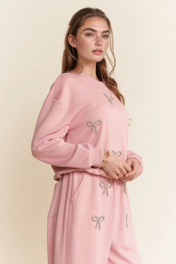 Rhinestone Bow Detail Soft Knit Sweatshirt Set – Blush
