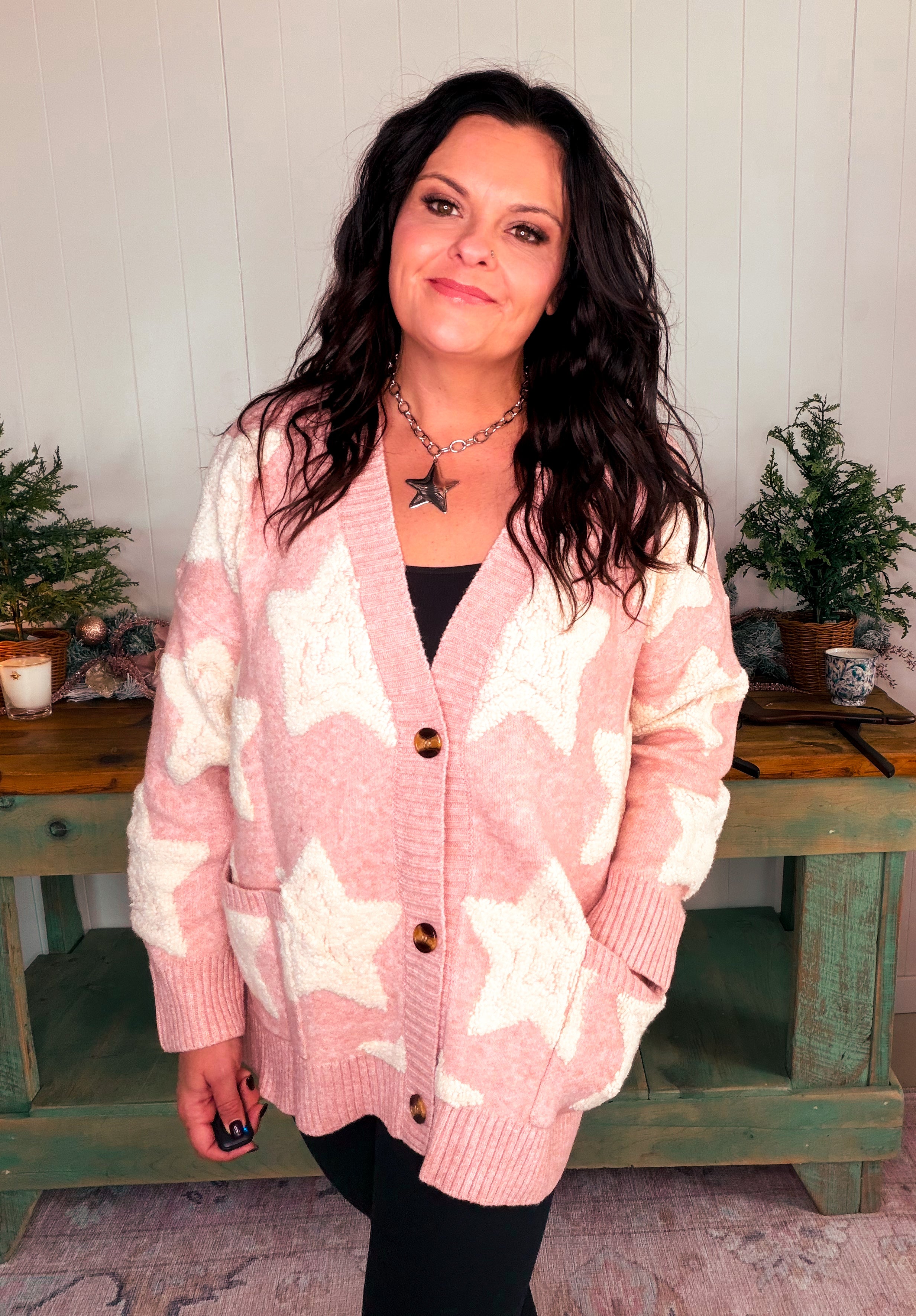 Sherpa Star Textured Sweater Cardigan with Pockets – Pink Creek