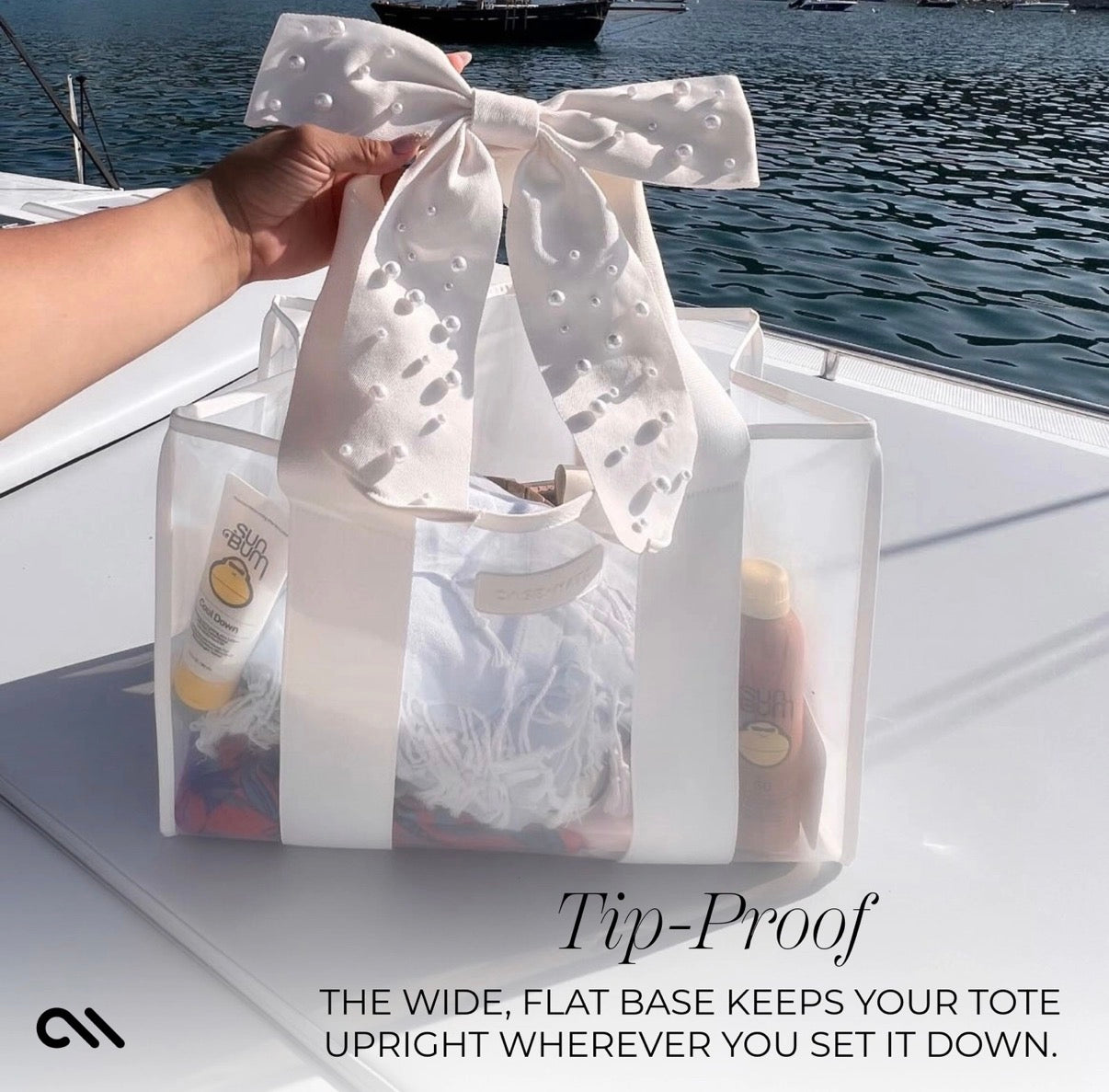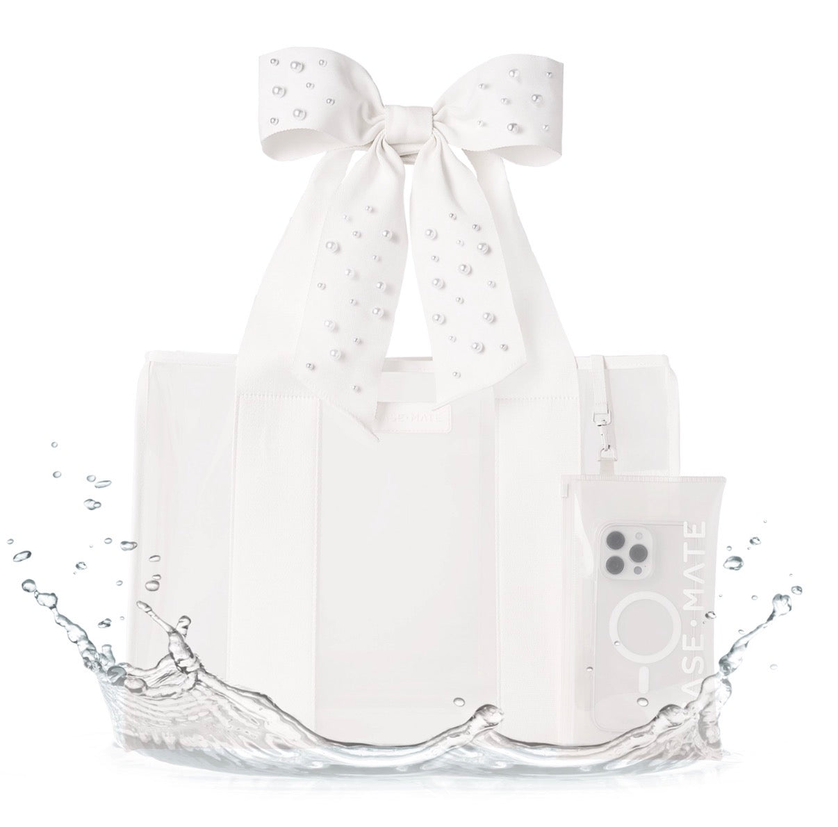 Case-Mate Special Edition Bow Ivory Pearl Beach Tote with Phone Pouch