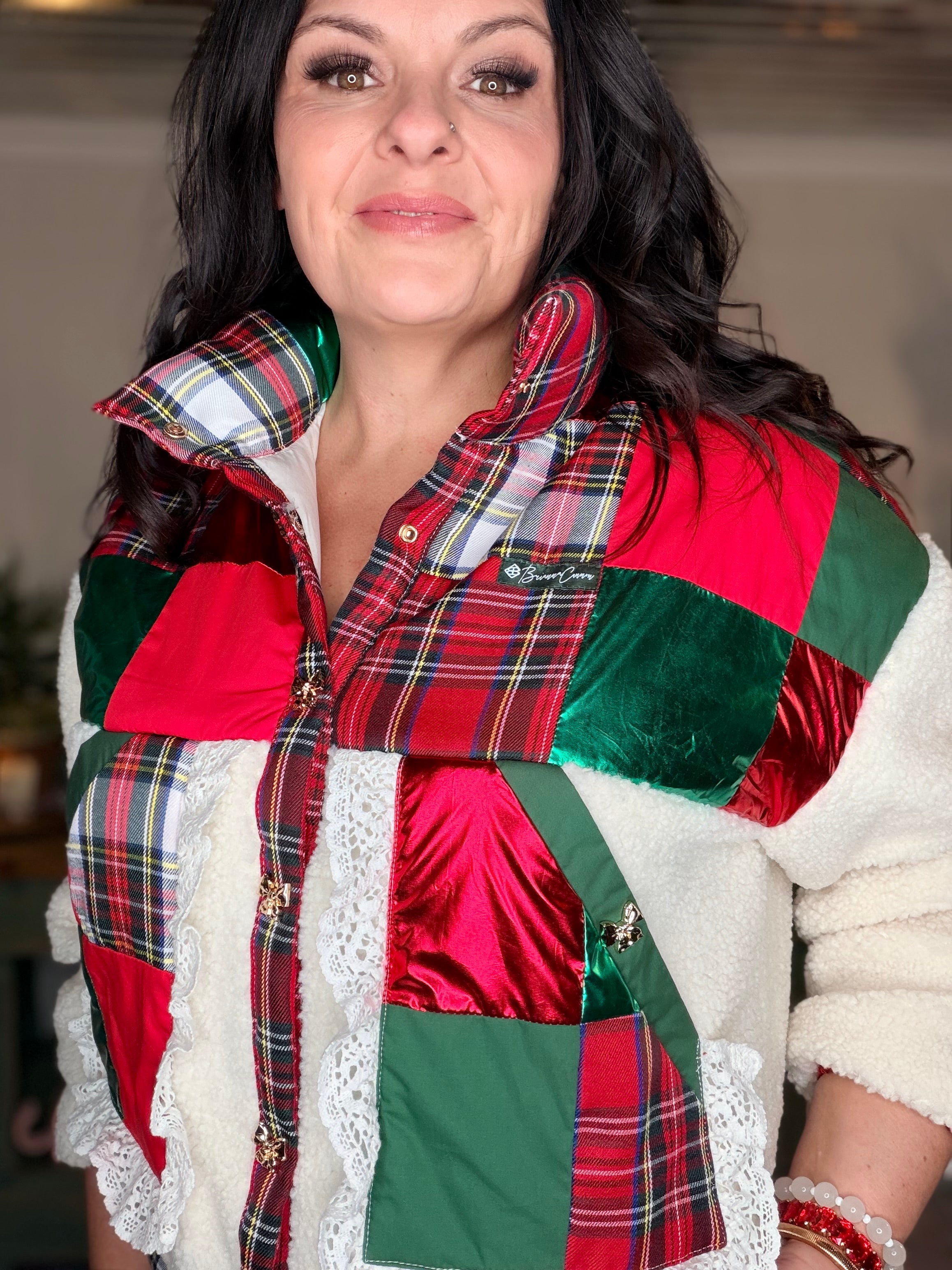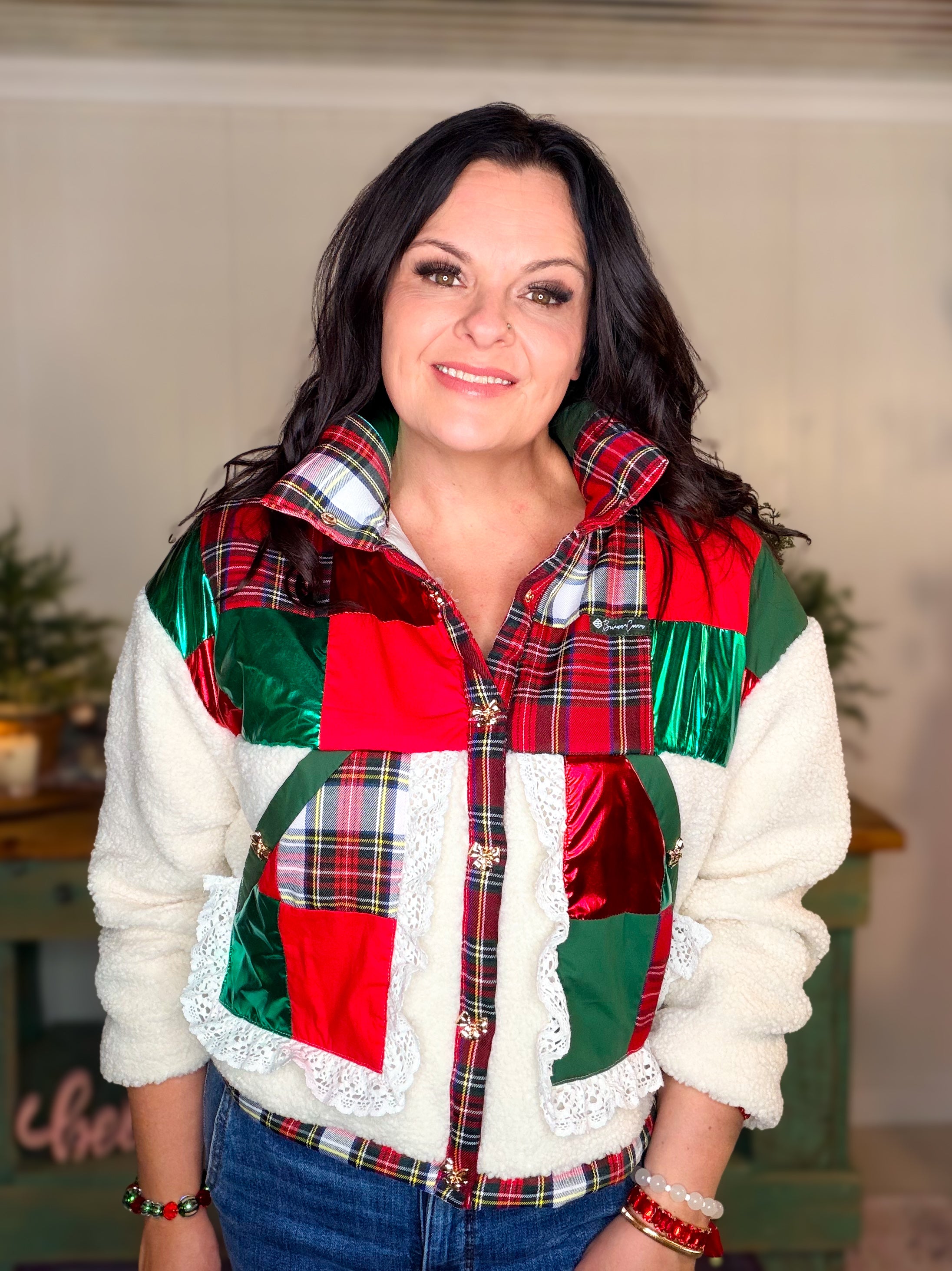 Wrap yourself in cozy holiday style with the Tartan Plaid Patchwork Sherpa Jacket from Brianna Cannon. 🎁 This statement jacket combines soft sherpa fabric with bold tartan plaid patchwork for a chic, seasonal look that’s as warm as it is eye-catching. Perfect for layering on chilly days or adding a festive touch to your everyday style.